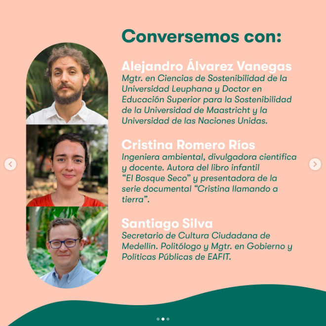 Desde 2018 he sido profe en EAFIT, una de las principales universidades de mi región, en cursos que acercan a estudiantes de todos pregrados con el cuidado de la naturaleza.